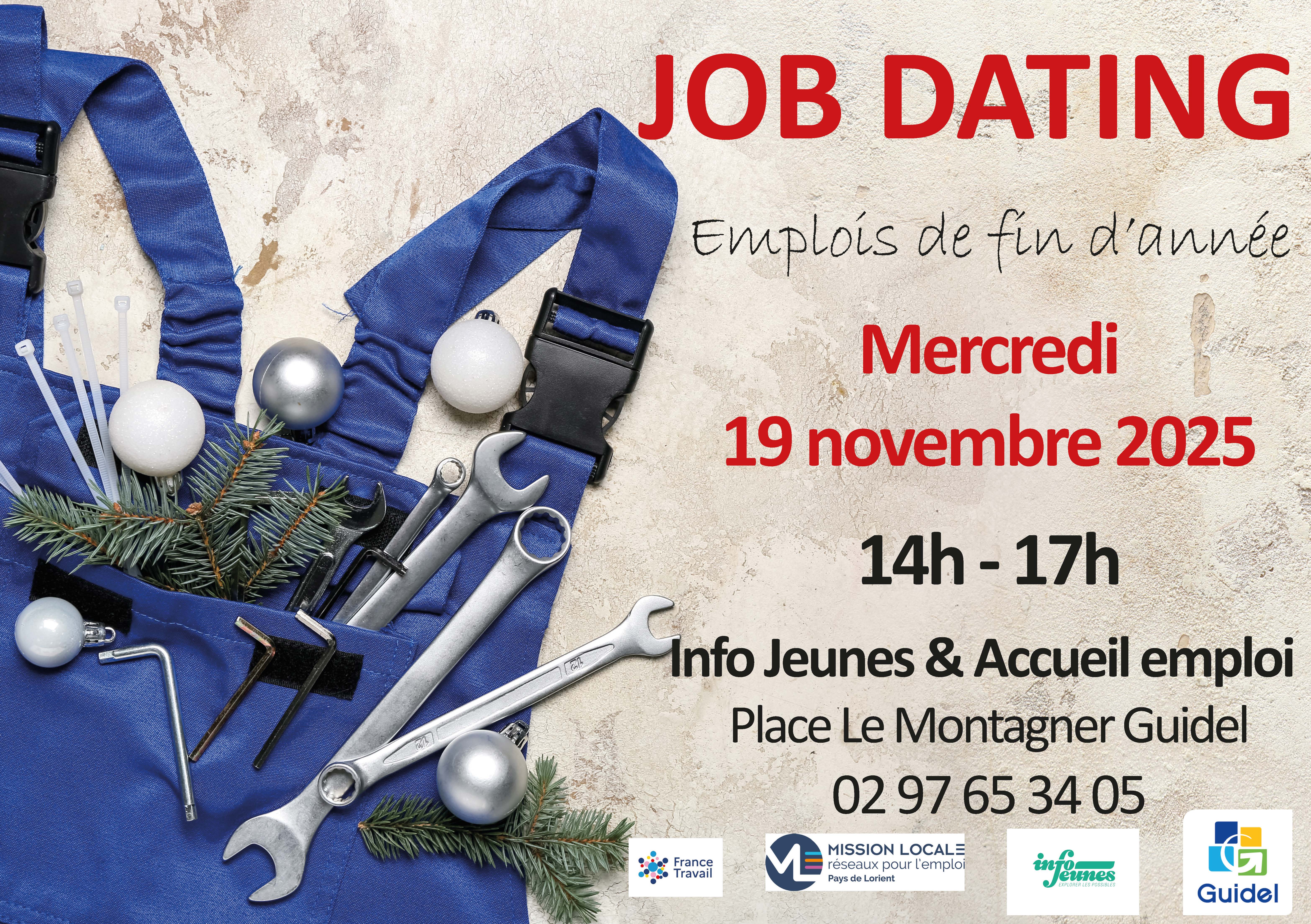 Étudiants, jeunes, adultes à la recherche d'un contrat saisonnier d'hiver, d'un CDD ou d'un CDI, venez rencontrer les employeurs qui vous recevront avec votre CV le mercredi 19 novembre de 14h à 17h au Point Accueil Emploi / Service Info Jeunes du CCAS, place Louis Le Montagner, Guidel